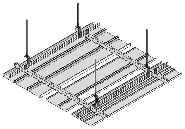 4.固定條形扣板主龍骨,用專用主龍骨吊件將主龍骨固定于輕鋼龍骨下,同時(shí)調(diào)好主龍骨水平、標(biāo)高等。主龍骨間距小于或等于1200mm,主龍骨與輕鋼龍骨之間相互垂直,主龍骨之間相互平行。